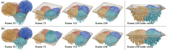 弹性体接触仿真是图形学仿真中最具挑战性的问题之一,Incremental Potential Contact (IPC)作为近年来图形学与接触力学领域的重要突破,提供了深刻的数学建模。然而,其实现通常依赖于带障碍函数的非线性优化,并涉及复杂且计算密集的矩阵运算。由于矩阵病态性,IPC的实现往往需要采用直接法进行计算,但直接法的矩阵分解过程导致内存占用极大。针对上述问题,论文对IPC模型实现了高效优化方法。具体来说,论文提出了基于障碍的增广拉格朗日迭代模型,用预条件共轭梯度(PCG)替代了直接法来求解子线性系统。同时,对超大规模稀疏矩阵的存储方式进行了革新,跳过了稀疏矩阵模式(pattern)的计算,在确保稀疏性存储的基础上完全省略了这一步骤。得益于此优化,方法在IPC基础上实现了近百倍的计算效率提升,且由于取消了矩阵分解,内存开销从128G以上降低到只需8G,而且还能解决刚性的病态问题。论文被SIGGRAPH Asia’24期刊轨(ACM Transactions on Graphics期刊)接收,第一作者为实验室博士生郭德闻,合作者包括CMU助理教授李旻辰和犹他大学副教授杨垠、李胜研究员(通讯作者)和汪国平教授(通讯作者)。