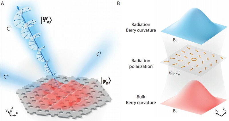 贝里曲率(Berry curvature)是量子力学中描述几何相位演化的关键物理量。非平凡贝里曲率可引发量子霍尔效应、反常霍尔效应等拓扑现象,在电子、光子等体系的拓扑研究中起着关键作用。然而,贝利曲率与能带结构本身的拓扑性质有关,往往被封闭在体系内部,难以直接观测。近日,北京大学的彭超、尹雪帆研究团队与合作者在《Nature Communications》上发表了一项突破性研究,首次在非厄米光子系统中通过远场辐射测量成功表征了贝利曲率。