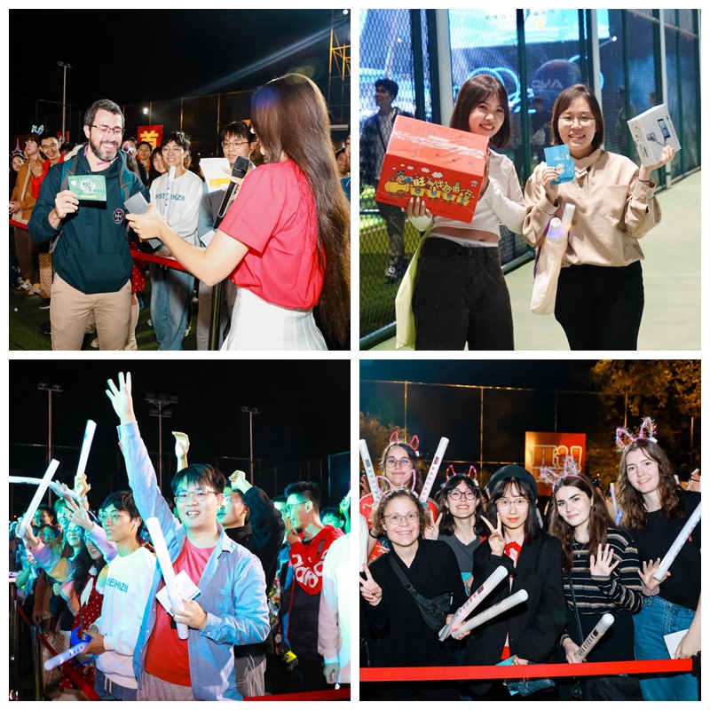 本次音乐节精心设置了多轮紧张刺激的抽奖环节,多位“幸运儿”抽中华为产品、手机云台等惊喜大奖,现场笑声阵阵,热闹非凡。一位参加音乐节的同学表示:“第一次来到新燕园校区,玩得非常开心,音乐节现场氛围特别好,歌曲好听,非常国际化!为我们准备的‘中秋专列’、免费米粉也很贴心,希望有机会能再次来新燕园参加活动,下次争取中奖。”