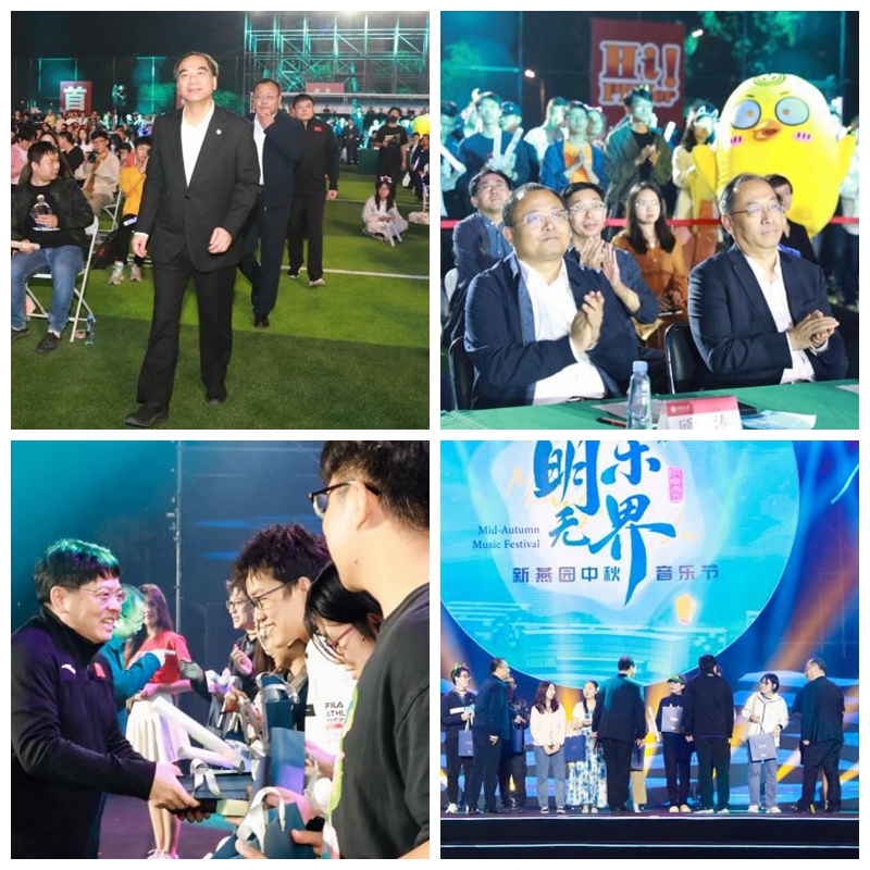 北京大学校长龚旗煌,副书记、纪委书记顾涛,副校长、总务长董志勇,副校长、新校区管委会主任张锦来到现场,为幸运观众发放餐饮中心制作的月饼礼盒,向大家送上真挚问候和美好祝福,为北京大学新燕园中秋音乐节正式启幕。本次音乐节还特别邀请昌平区委副书记、区长支现伟,昌平区委常委、武装部政委车拥军,昌平区委常委、常务副区长刘晓东以及关心支持新燕园校区建设发展的各方朋友和校内各职能部门和院系负责人莅临活动现场,与观众们一同观看精彩的演出,品尝月饼,享受团圆之乐。
