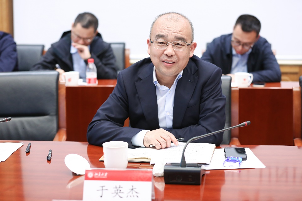 郝平代表学校对于英杰一行的到来表示欢迎,对北京市一直以来给予北大的关心和支持表示感谢。他指出,北京市文化氛围浓厚、科技创新能力强劲,北大始终在教育、科技、文化等多方面深度融入北京“四个中心”建设。双方共同就加快北大科技成果落地转化、促进新型研发机构建设、学术创新链产业链相互融合有效衔接等方面进行了探讨。