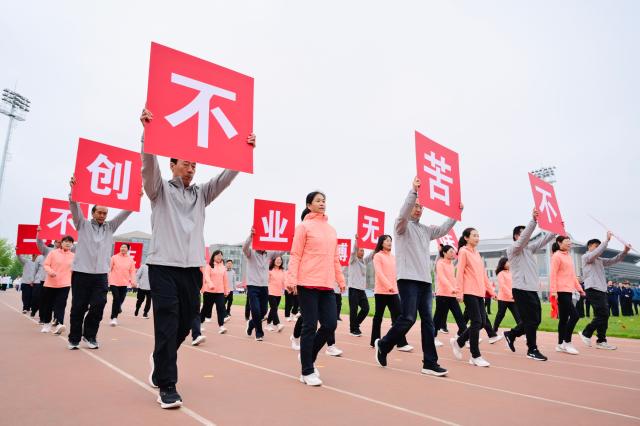4月22日上午的开幕式中,伴随着激昂的运动会进行曲,新校区管委办代表队身着统一的服装,迈着整齐的步伐,喊着响亮的口号在主席台前精彩亮相,展现出了教职工们昂扬向上的精神风貌。