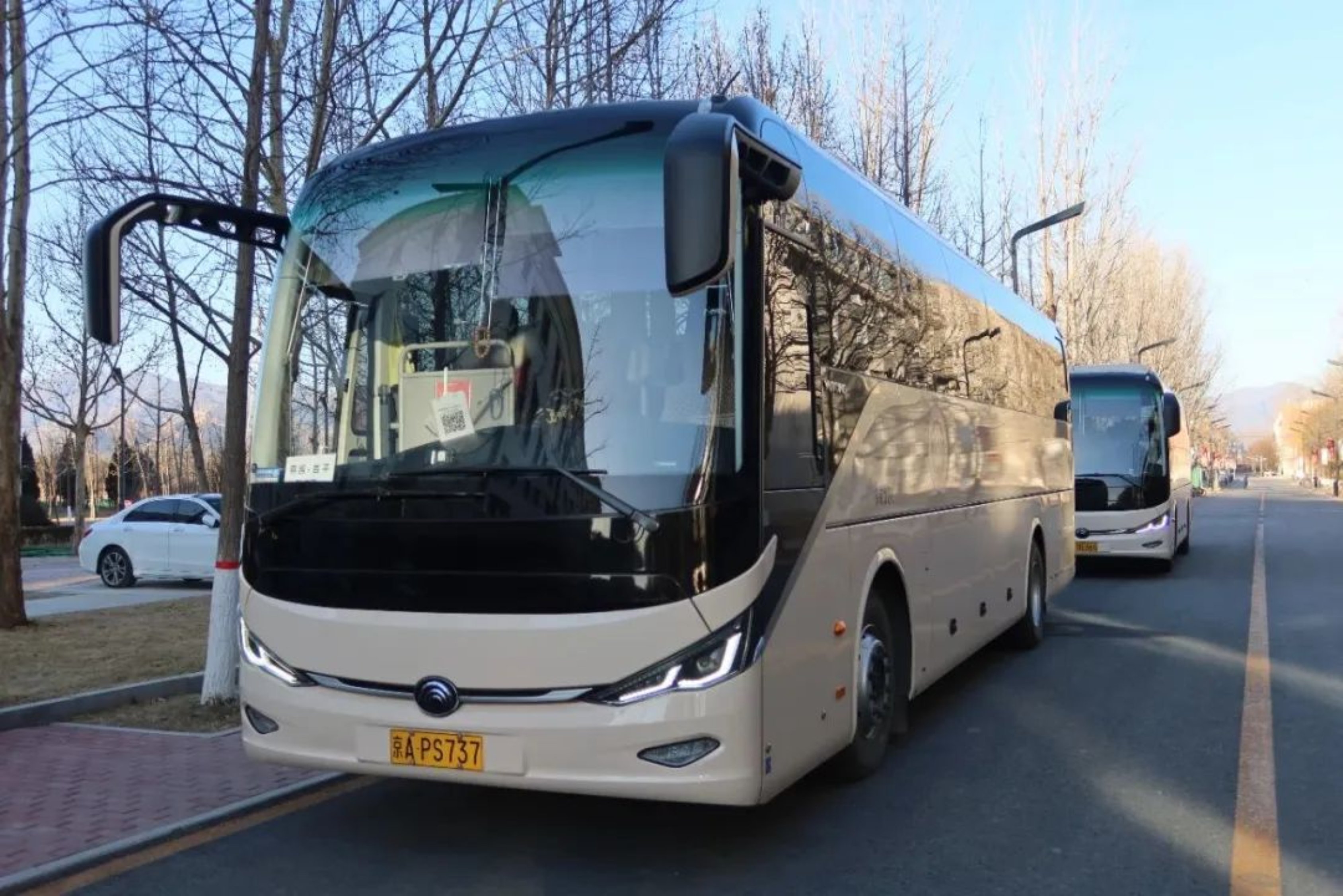 新学期的第一天开始了发往燕园的校车早早停在路边等待同学们上车