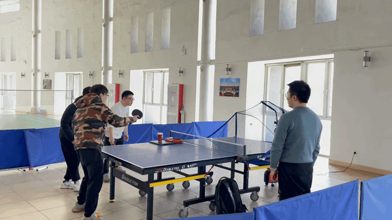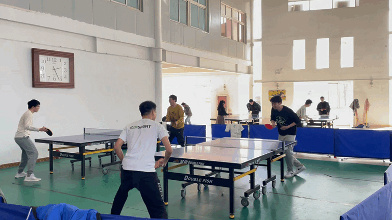 乒乓球馆内同学们尽情挥洒汗水相互切磋球技欢声笑语淡去一天的疲惫