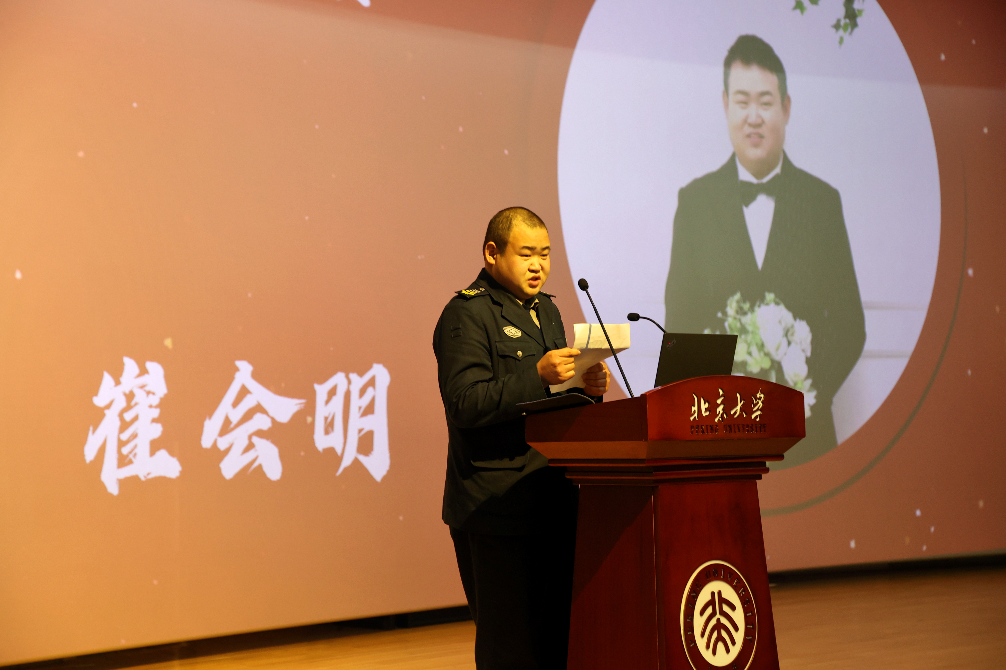 崔会明谈到了自加入北京大学保安大队至今为止从事安全保卫工作的5000多个日日夜夜。他表示,在今后的工作中将继续努力学习保安专业知识和技能,做到尽职尽责、严守纪律、守卫校园、服务师生,为保卫北京大学安全稳定奉献自己的一份力量。