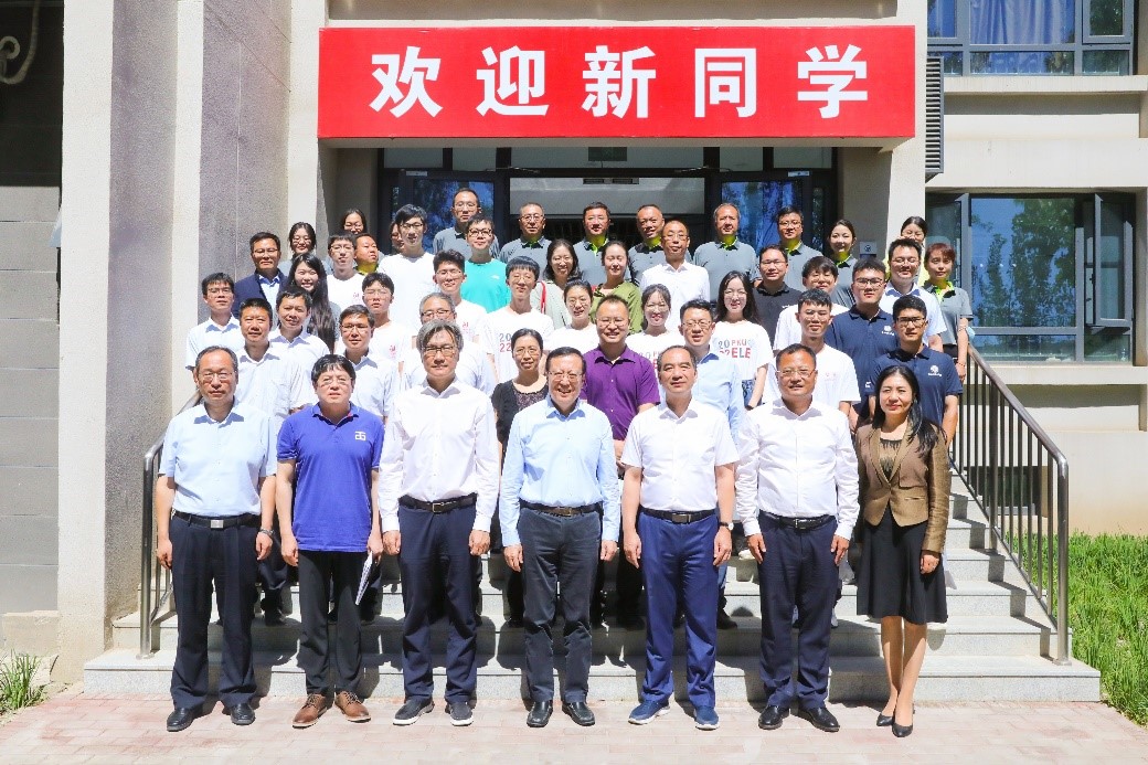 校领导在新校区与师生员工合影