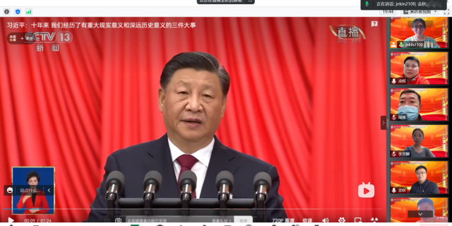 新校区内各学院、各部门也积极组织本单位师生干部收看二十大开幕会,共同聆听习近平同志的讲话。
