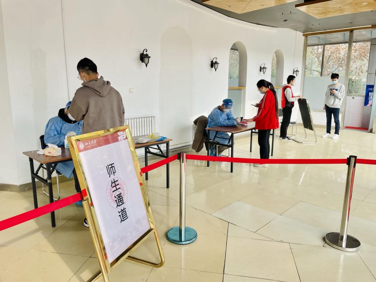 室内核酸检测点正式启用后,新校区还安排了师生志愿者、安保人员现场协助扫码登记、提示佩戴口罩、维持秩序等,保障核酸检测工作秩序井然、快捷高效。