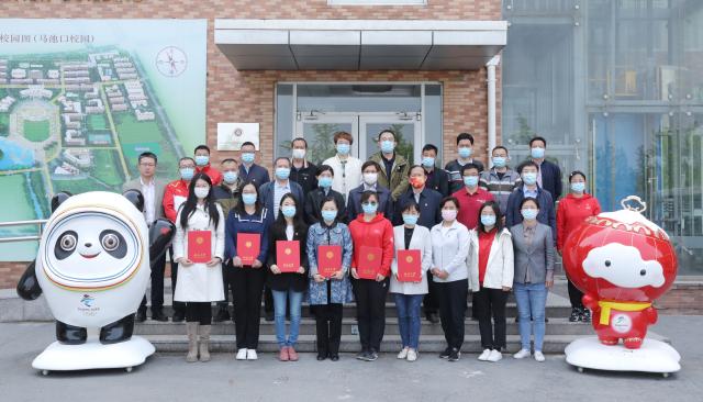 获得北大冬奥志愿者工作突出贡献个人奖的新校区管委办工作人员合影