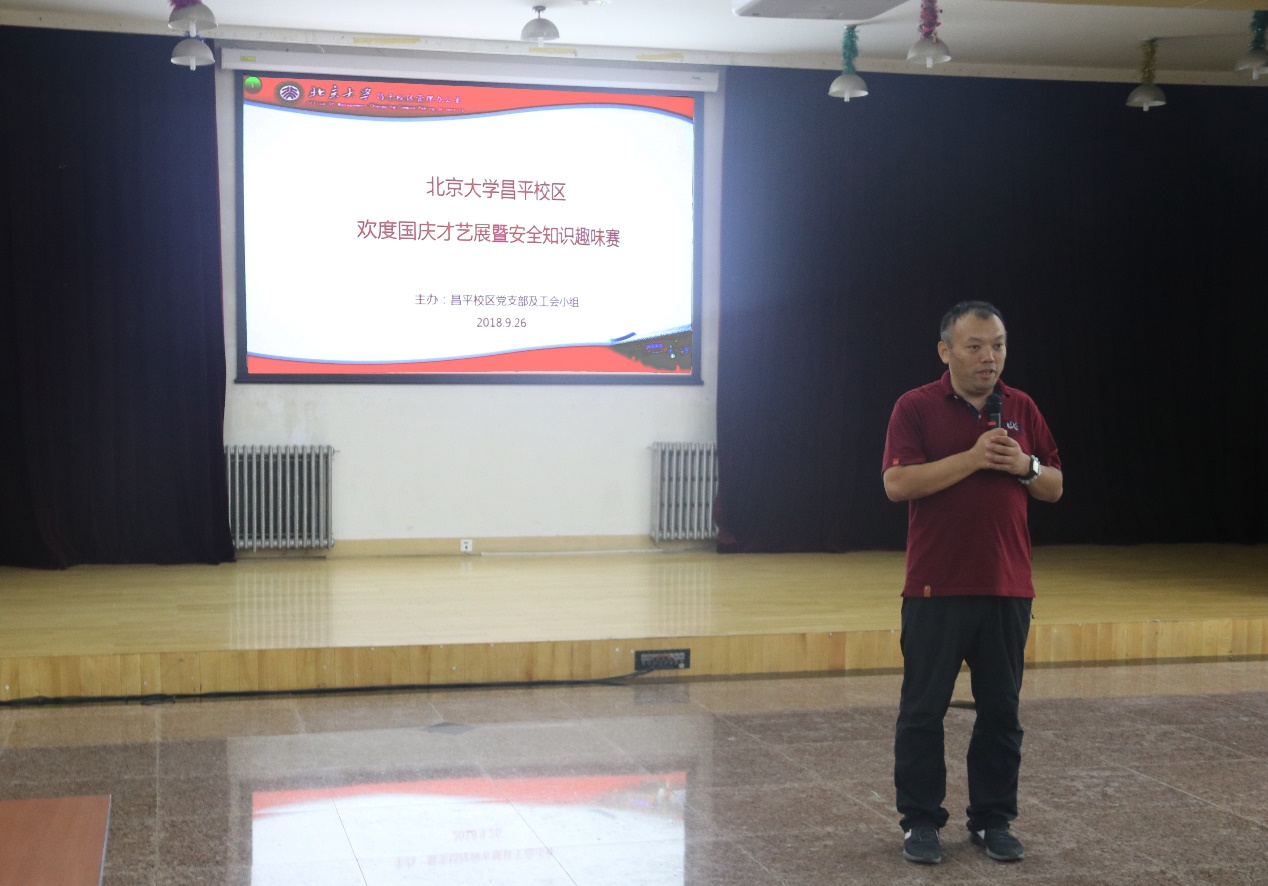 为深入贯彻落实习近平新时代中国特色社会主义思想、党的十九大和习近平总书记关于文化艺术工作讲话精神,值此国庆佳节到来之际,北京大学昌平校区于9月26日举办了“欢度国庆才艺展暨安全知识趣味赛”活动。