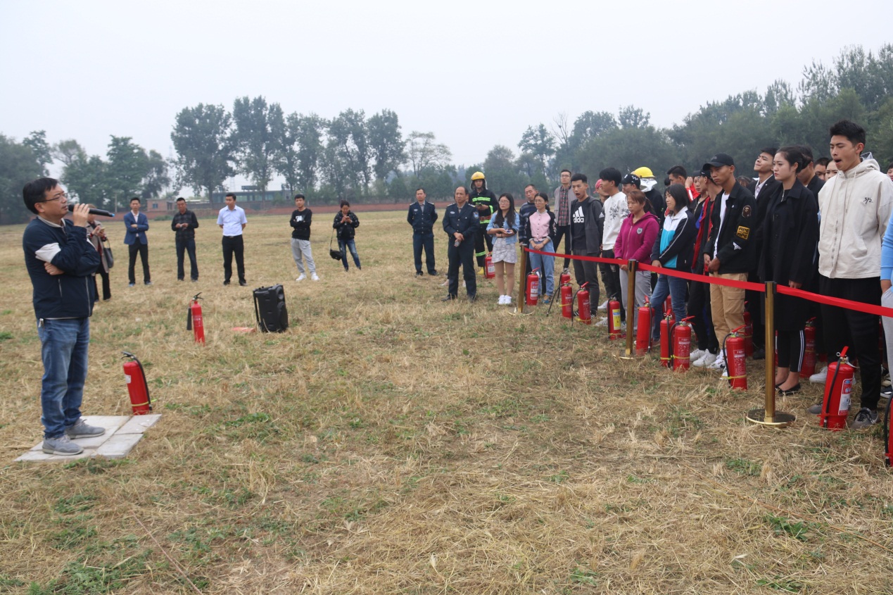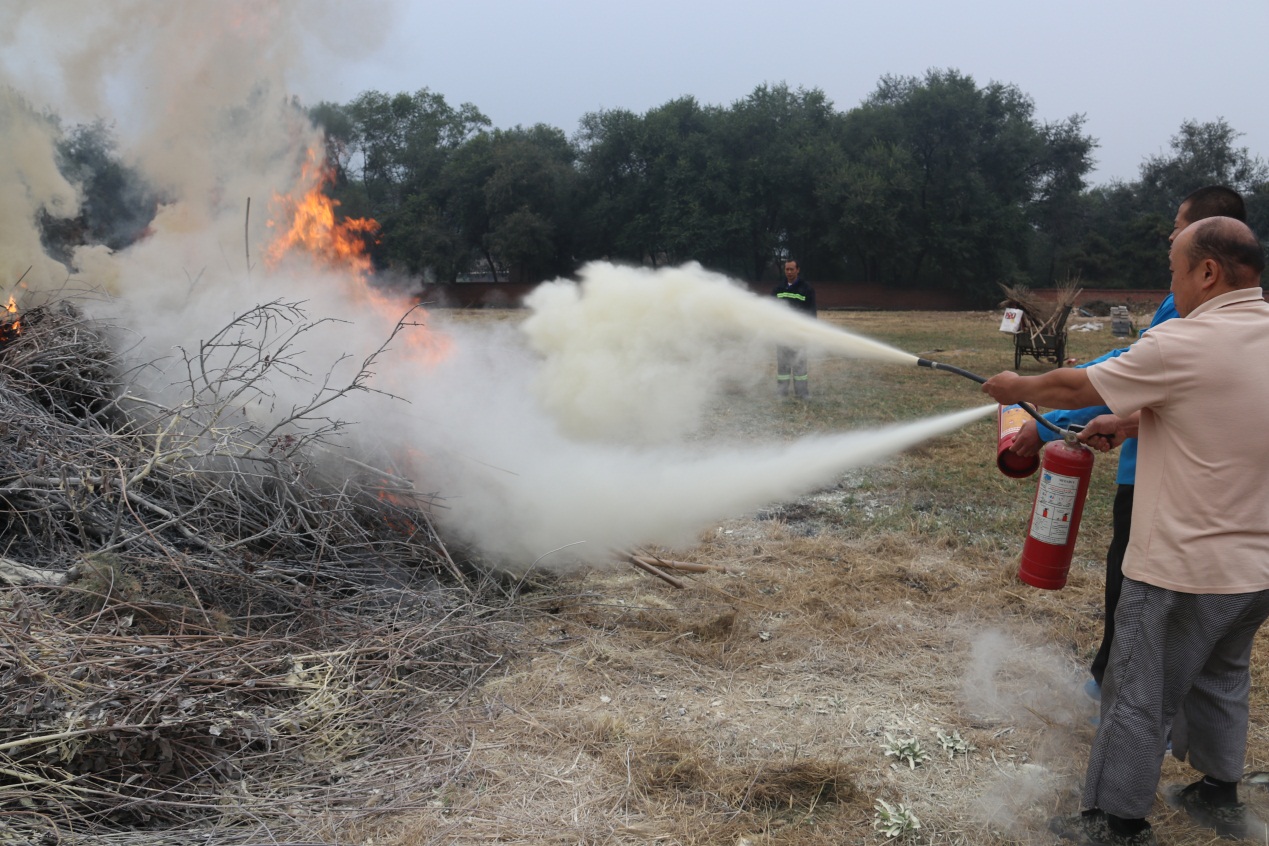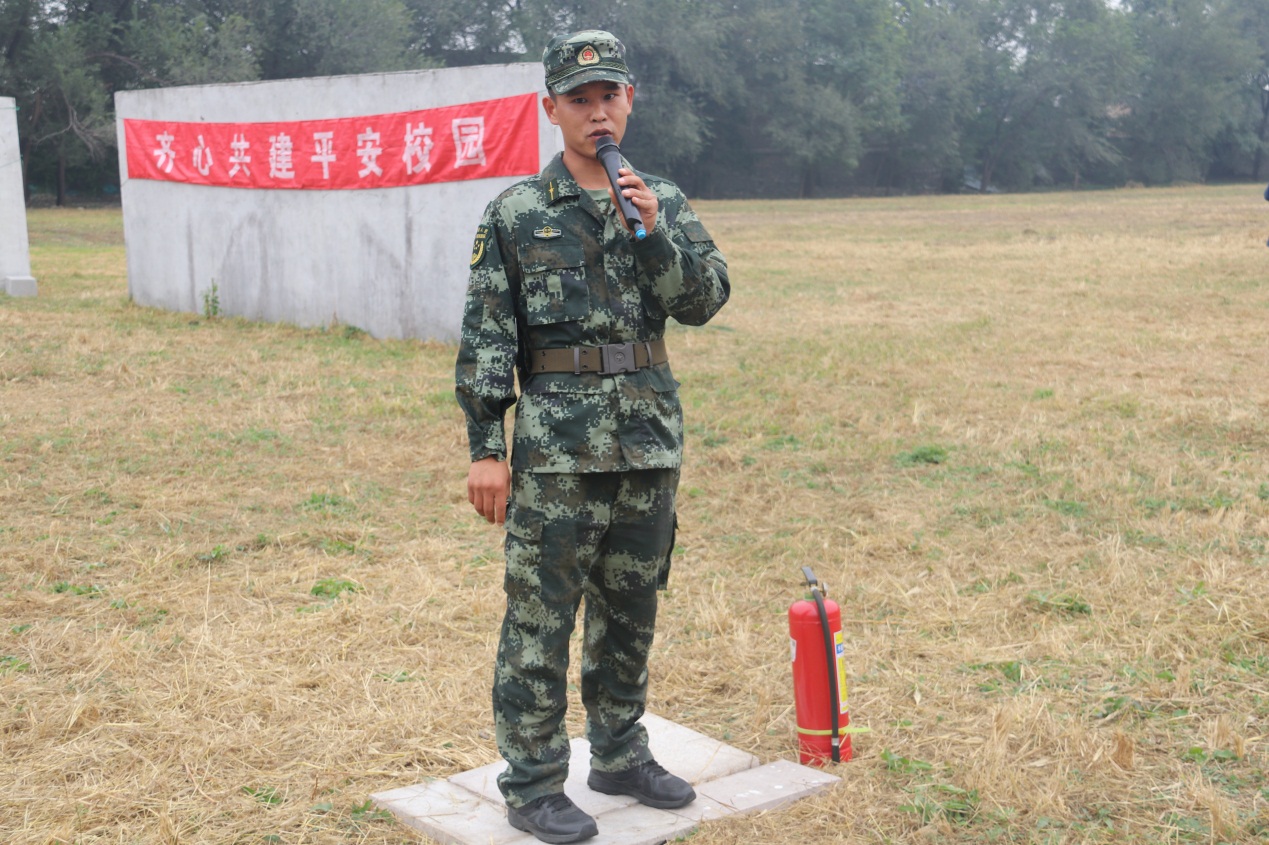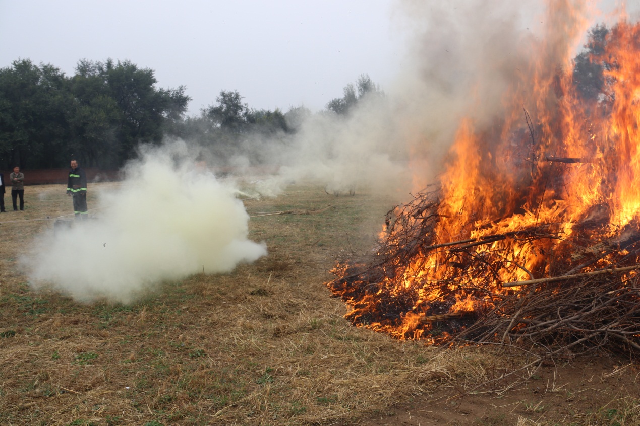 之后,校区义务消防员在两垛柴堆上倒上柴油并点燃。安全保卫办公室工作人员整体检查后汇报:“报告总指挥,昌平校区消防演练各项工作准备就绪,请指示!” 总指挥宣布:“灭火消防演练开始”。
