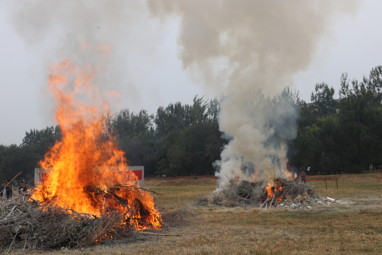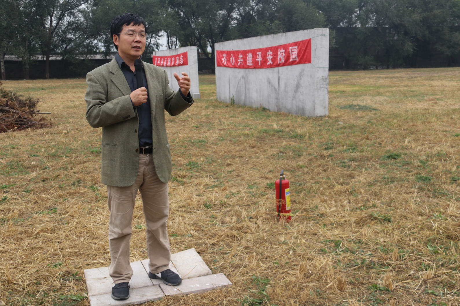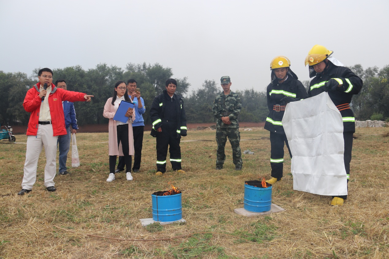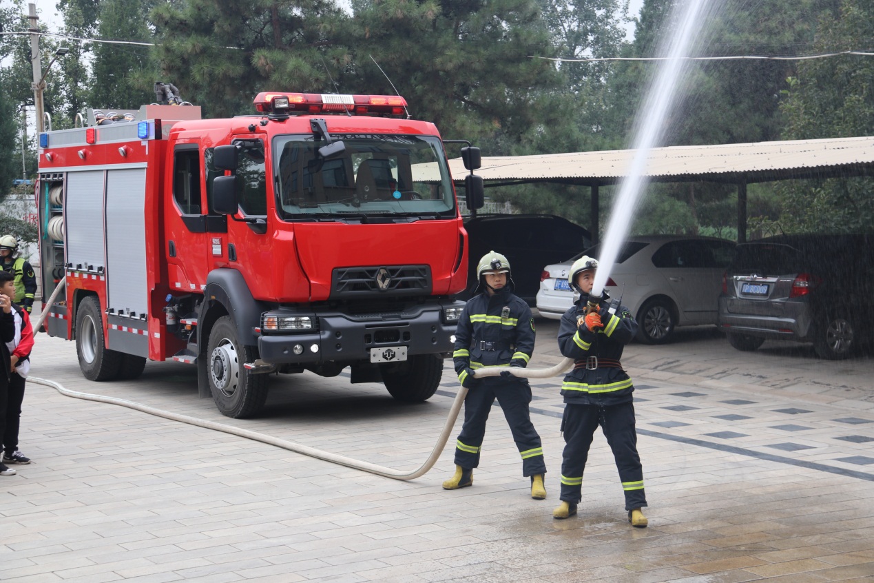 之后,校区义务消防员在两垛柴堆上倒上柴油并点燃。安全保卫办公室工作人员整体检查后汇报:“报告总指挥,昌平校区消防演练各项工作准备就绪,请指示!” 总指挥宣布:“灭火消防演练开始”。