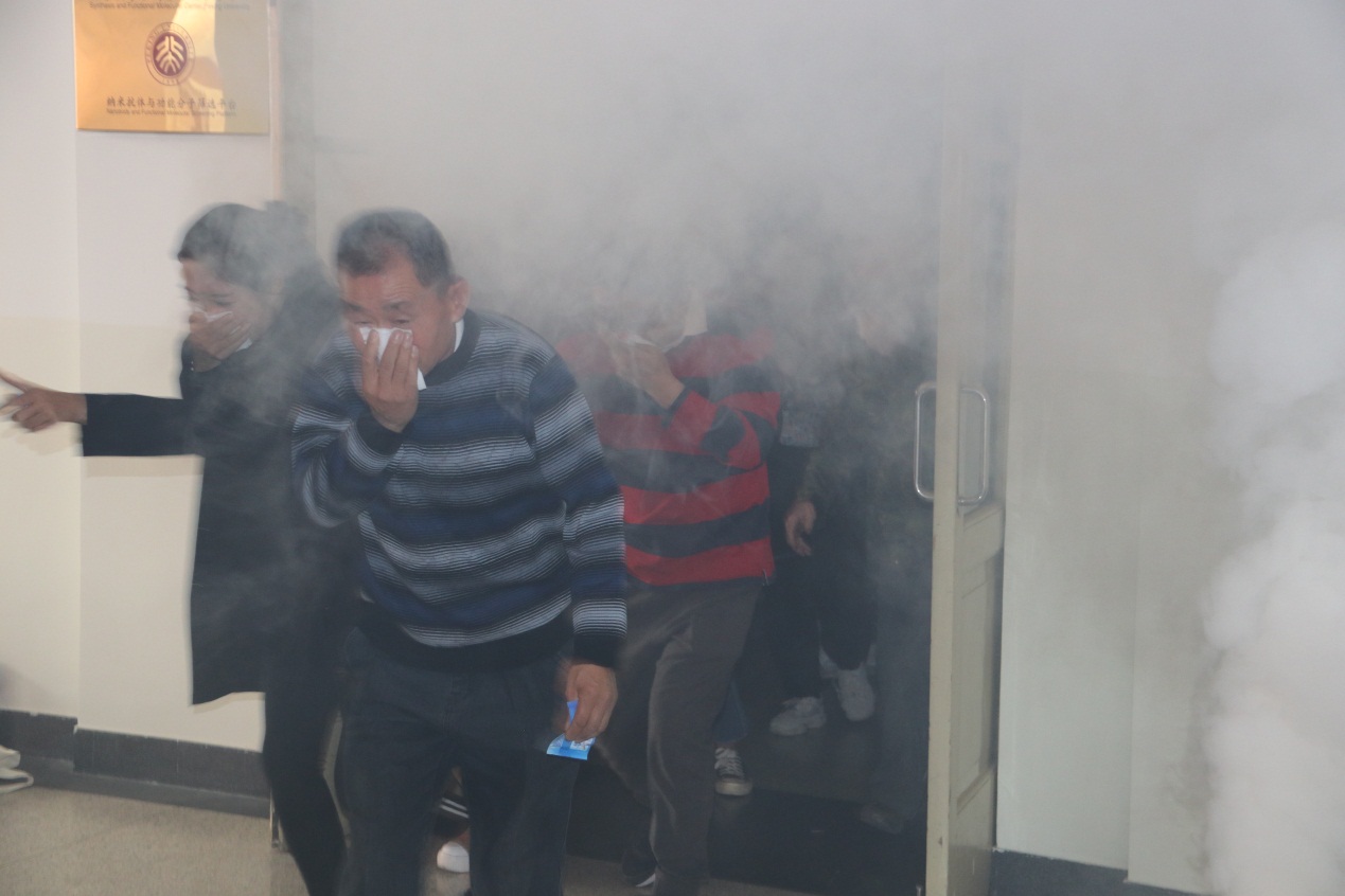 随后,演习进入第二部分,即灭火消防演练阶段。张新祥主任、杨跃平副部长、消防支队教官先后发表了讲话,他们结合近期北京市及全国发生的火灾事故,要求大家提高消防意识,增强应急处置本领,强调“北大无小事、安全无小事、北大安全更无小事”,希望师生员工在平时的教学、科研、工作及生活当中,时时注意安全,处处关心安全,齐心协力建设平安校园。同时,他们还对刚刚过去的紧急疏散演习进行了点评。