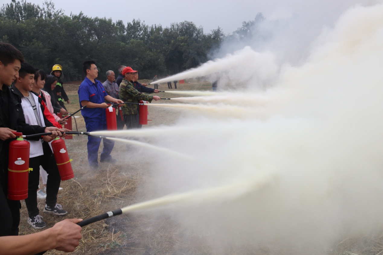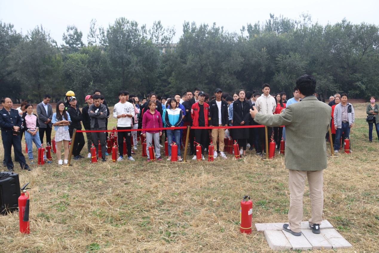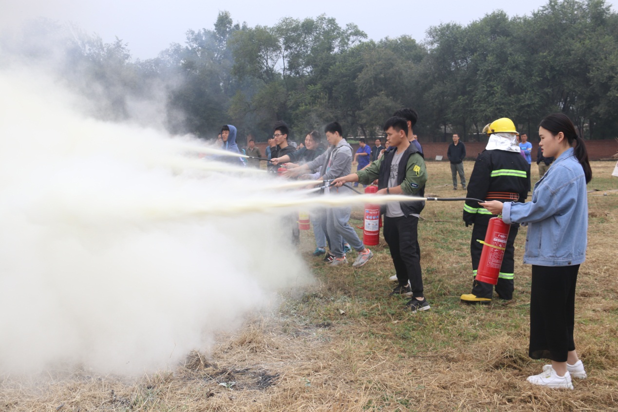 然后,师生员工按照每队10人,多批次使用灭火器进行灭火演练。期间,还根据风向、火势等因素变化,及时调整灭火位置。演练最后,保安员使用灭火器和消防水带将余火扑灭。