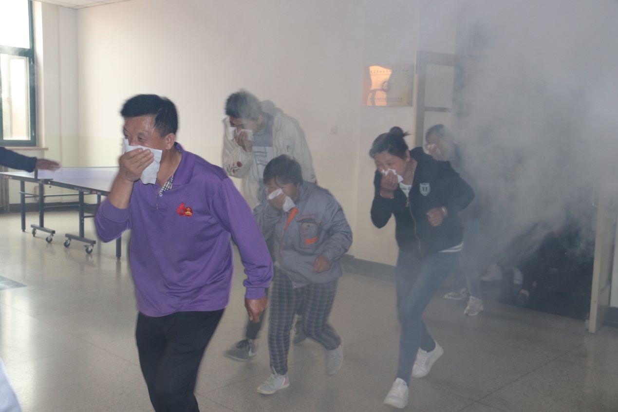 待所有人员安全撤离到主楼前空旷区域、火情被完全控制后,现场指挥人员宣布,紧急疏散演习圆满成功,并引导大家进入灭火消防演练状态。