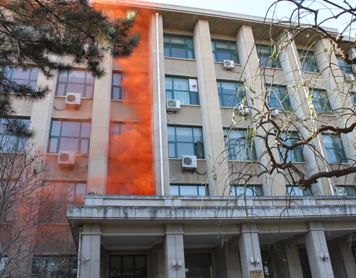 紧急疏散演习参考了学校保卫部的方案,假设主楼A座231房间使用不合格插线板,造成短路引燃周围设施,并产生大量烟雾。某人路过主楼A座2层,发现门窗冒烟起火,立即拨打校区安全保卫值班人员电话报警。安全保卫值班人员接到火灾报警电话后,一方面向安全保卫办公室主管报告,一方面呼叫保安人员立即赶往主楼周边疏散交通,封闭通往主楼各路口,禁止人员车辆进入。安全保卫办公室接报告后立即将着火情况向主管安全的校区领导汇报,并按照校区领导的指示要求和校区火灾应急预案行动:一是安全保卫办公室指挥人员立即到达现场进行全方位指挥;二是安全保卫办公室带领应急行动组立即赶往主楼进行现场组织指挥;三是向“119”报警(未列入本次演习内容),说明起火的地点、原因、性质、火势大小和人员伤亡情况,并派人到校区南门接警。