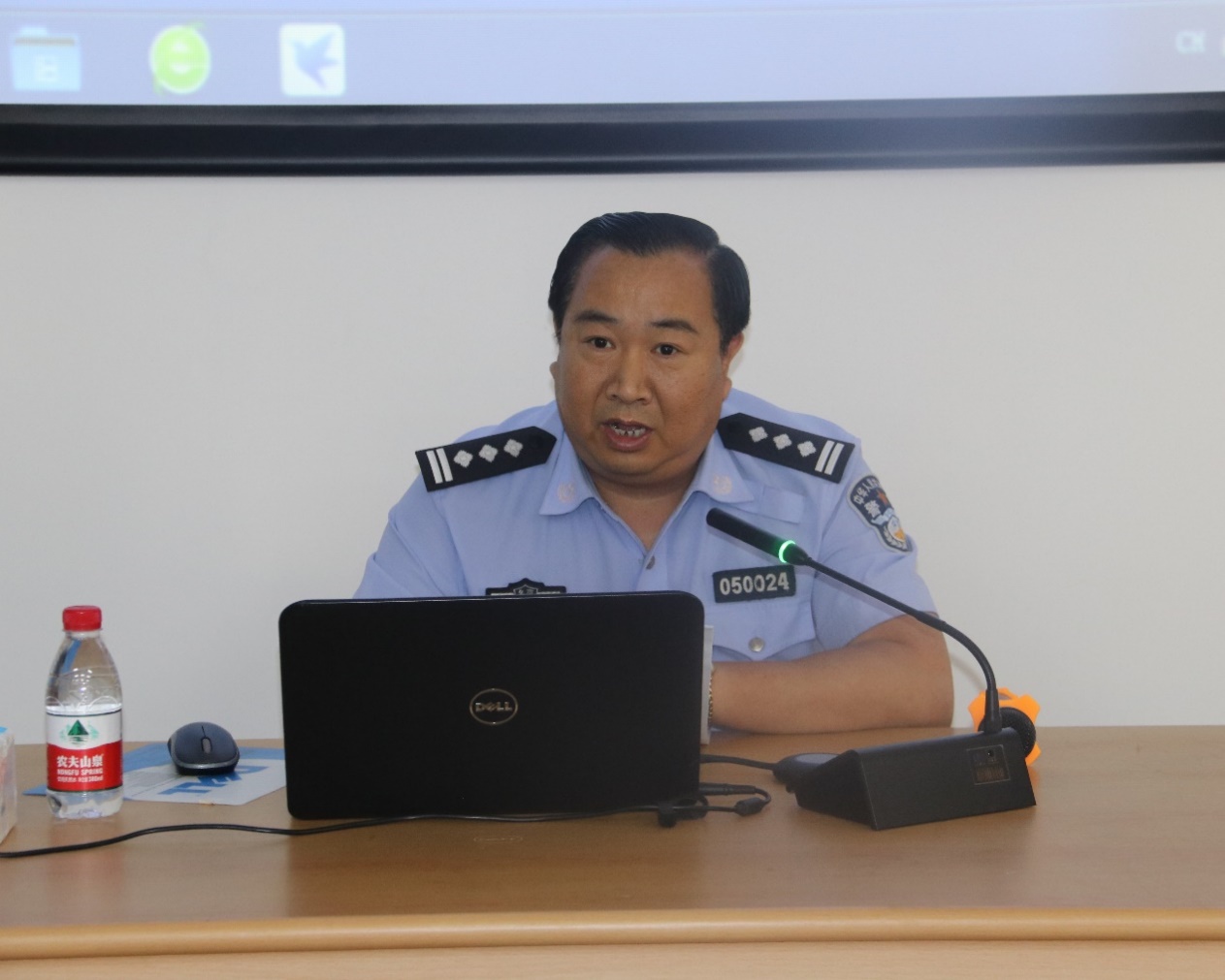 之后,公安局赵警官参照《中华人民共和国治安管理处罚法》,结合自己28年的从警经历,对交通安全、实验室安全、校园治安、反恐防暴常识、监控室建设等方面进行了全方位地讲解。赵警官还特别从刑事犯罪和治安管理处罚的区别和适用范围,给大家介绍了目前违法和犯罪的主要种类和量刑标准,叮嘱广大师生员工对违法犯罪不要存在侥幸心理,正所谓“莫伸手、伸手必被抓”。同时,赵警官还提醒大家看好自己的贵重物品,提高警惕意识。赵警官经历丰富,讲课内容精彩,生动形象,获得师生员工的一致好评。