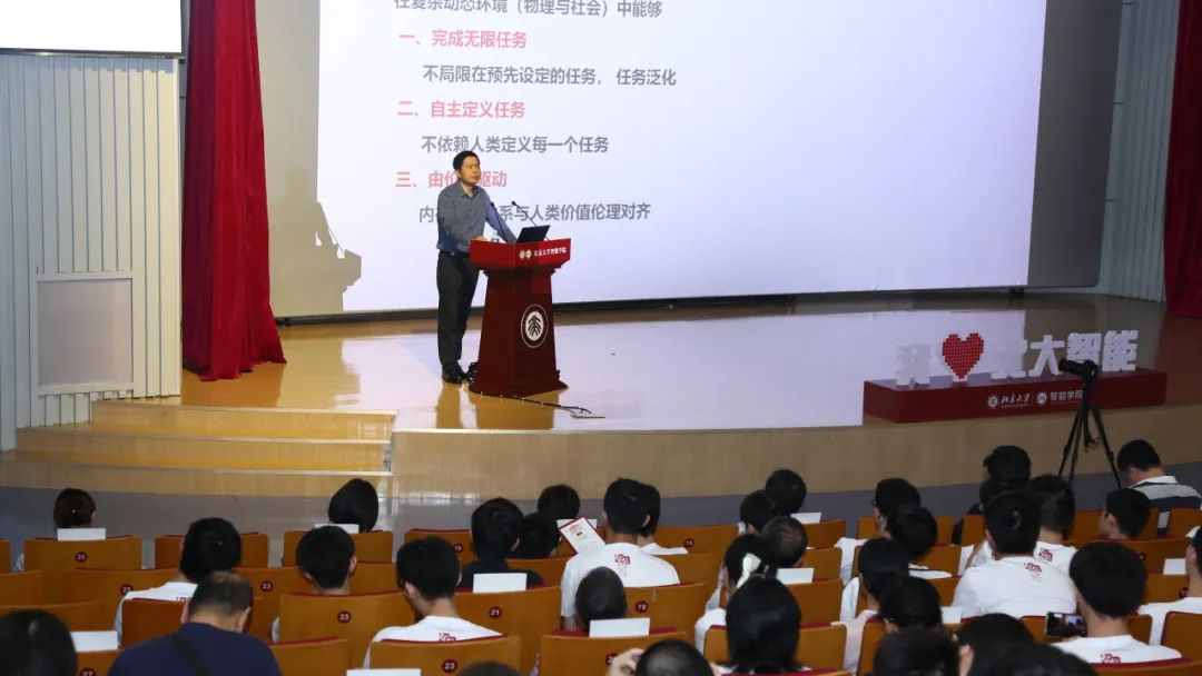 开学典礼结束后,朱松纯院长以“通用人工智能的中国技术路线思考”为主题,为全体2024级研究生新生和高年级学生代表讲授“智能学院开学第一课”。