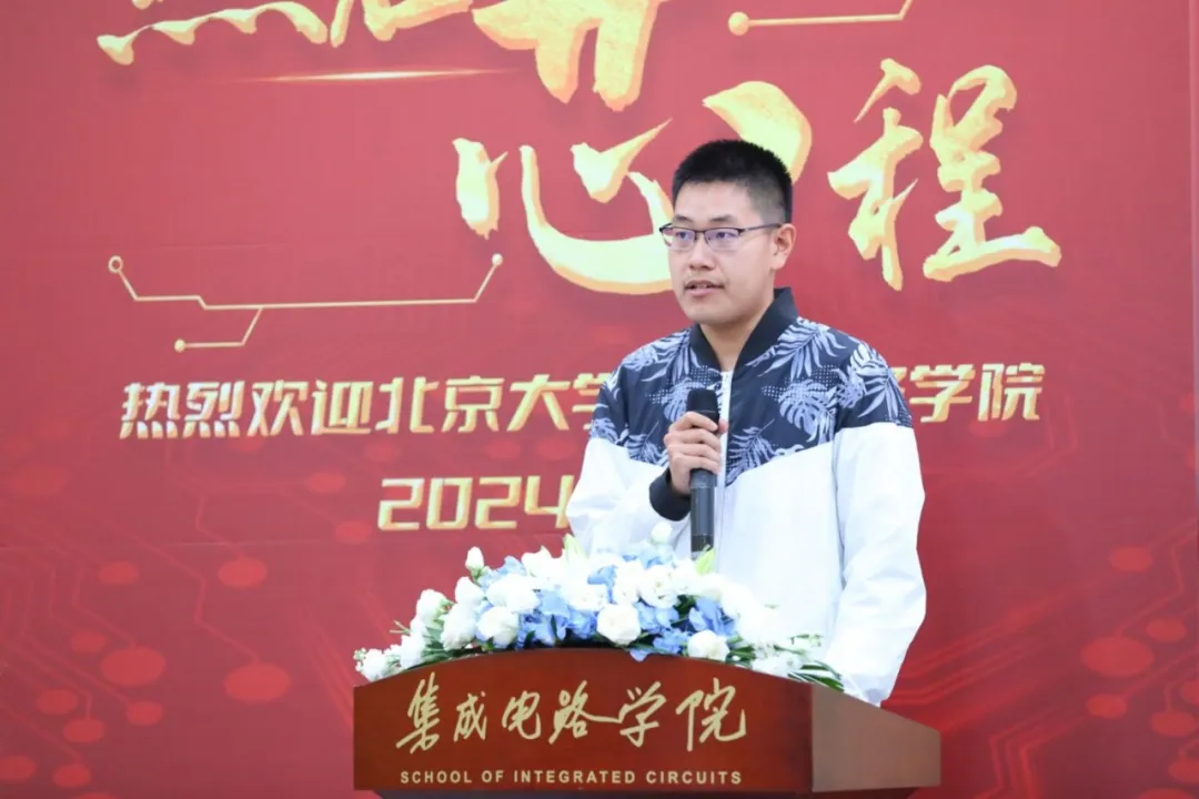 随后,2022级博士研究生李聪作为在校生代表发言,他祝愿学弟学妹们,培养跨学科视野、团队合作及程积累的价值,并鼓励大家享受科研,为中国集成电路事业贡献力量。
