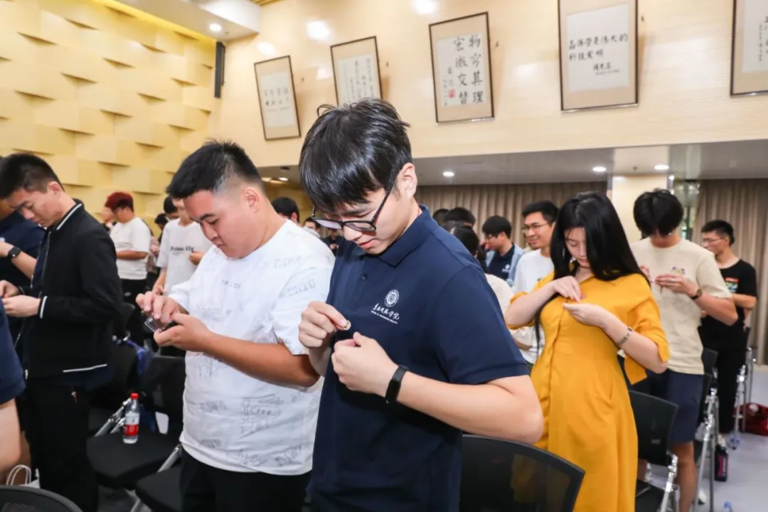 王源为新生代表赠送院徽,这标志着同学们正式成为集成电路学院大家庭的一份子。