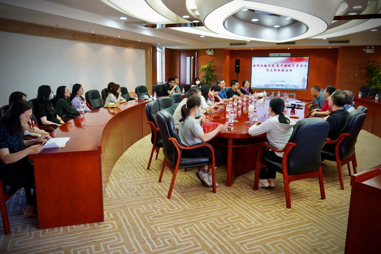 6月18日下午,新闻与传播学院教工第一党支部、教工第二党支部、新媒体研究院教工党支部共赴昌平新校区与新校区管理委员会办公室党支部开展支部共建活动,昌平新校区管理委员会办公室主任殷雪松、副主任兼支部书记王文彦、副主任张剑岷等老师,新闻与传播学院党委委员张积、徐金灿,教工第一党支部书记张慧瑜、教工第二党支部书记王玮以及教工党员20余人参加活动。活动由殷雪松主持。