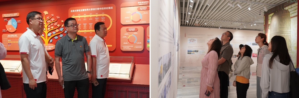 随后,同志们前往校史馆,参观“今日北大”主题展览。展览用12个单元回顾了北大百年校庆后的建设成就,展现出北大人矢志一流的追求和严谨求实的作风。与“学科建设成就展”相结合,同志们通过了解走进新世纪的北大在扎根中国大地办大学、创建世界一流大学进程中的奋斗历程,深入感受学校为学科建设发展提供的全方位保障和丰沃土壤,更加感到建设新燕园校区的责任重大、使命光荣。