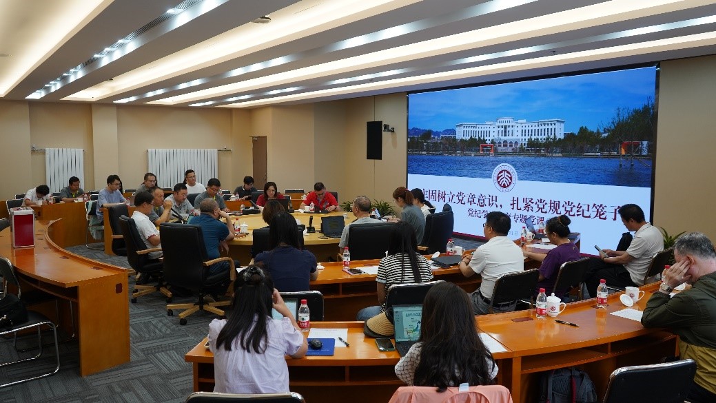 为深入学习贯彻习近平总书记关于加强党的纪律建设的重要论述,进一步学纪、知纪、明纪、守纪,持续推进党纪学习教育走深走实,6月21日上午,新校区管理委员会办公室党支部书记王文彦以“牢固树立党章意识,扎紧党规党纪笼子”为题讲授专题党课。新校区管委办领导班子成员、全体党员及行政管理岗位同志参加学习。
