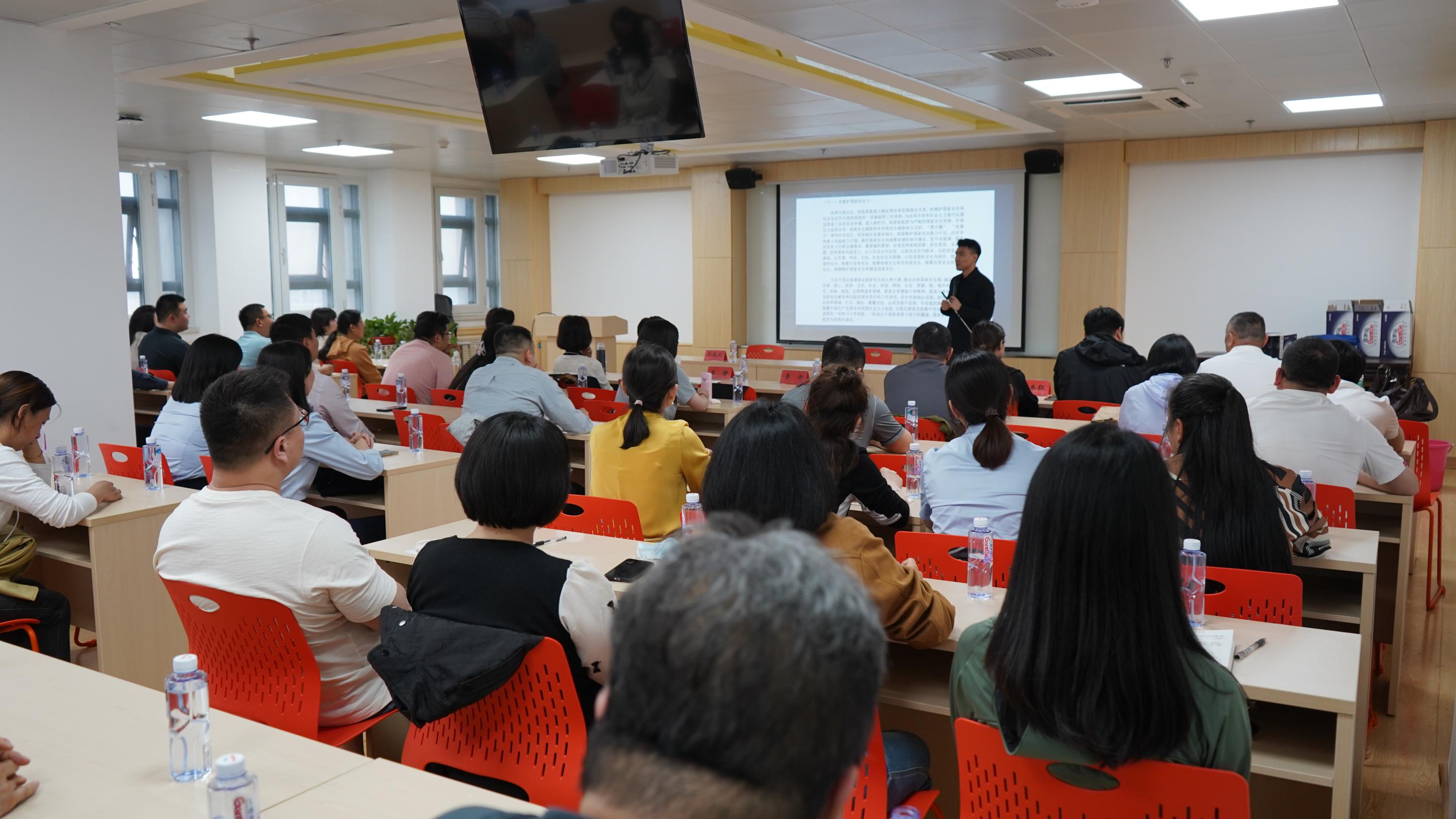 随后,同志们前往王克桢楼,聆听国际关系学院国家安全学系助理教授、博士生导师祁昊天所作的专题党课。国家安全是安邦定国的重要基石,维护国家安全是全国各族人民根本利益所在。进入新时代,我国面临更为严峻的国家安全形势,外部压力前所未有。祁昊天以“科技变革、地区冲突与新时代国家安全”为题,通过多维度、多层次的讲解,以问题为导向、以实例为抓手,结合科技发展趋势和地区冲突现状对国际形势进行分析,深入阐释总体国家安全观的思想内涵与要求,发人深思。